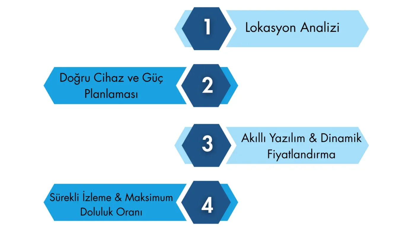 Profesyonel bir şarj istasyonu karlılık analizi şu 6 metrik üzerinden yapılmalıdır:
