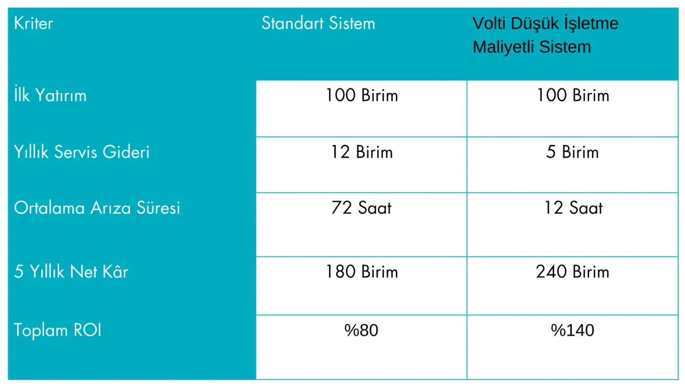 Bu yapı sayesinde 5 yıllık projeksiyonda toplam kârlılık farkı %20–30 artabilir.