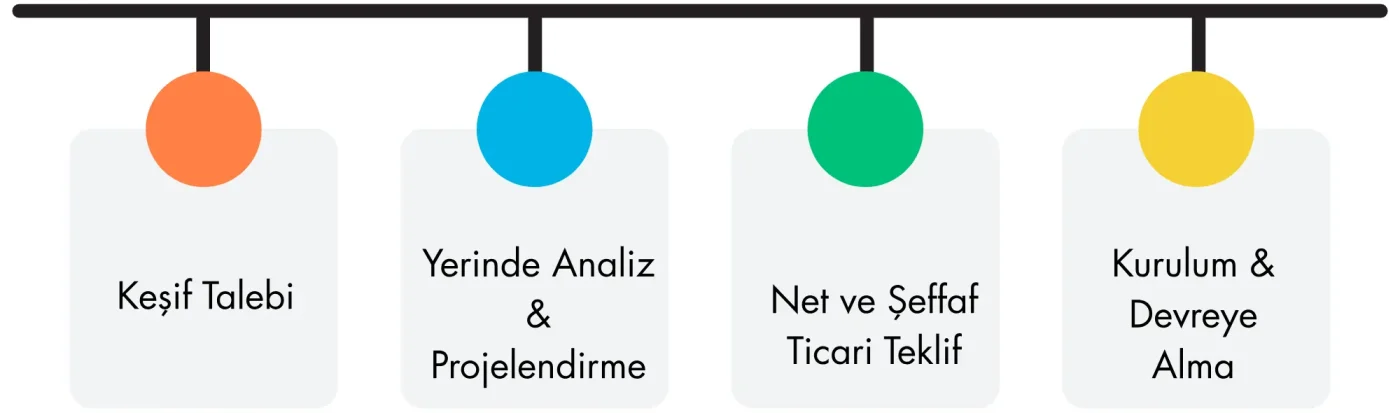 Kurulum sonrası ise 7/24 teknik destek ve izleme hizmetiyle sisteminiz kesintisiz çalışır.